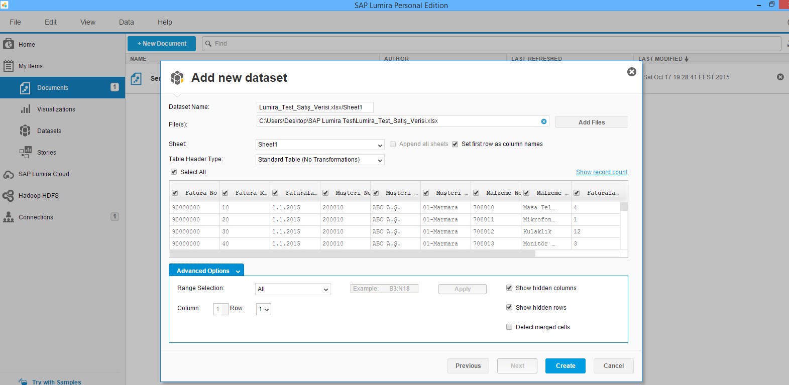link’i üzerinden SAP Lumira, Personal Edition versiyonunu bilgisayarıma indirmem ile başlayan merakım her SAP danışmanında olduğu gibi test etme ve biran evvel fonksiyonalitesini keşfetmeme neden oldu. Bunun için sizlerle de paylaşabileceğim bir test senaryosu hazırlayarak kolları sıvadım.