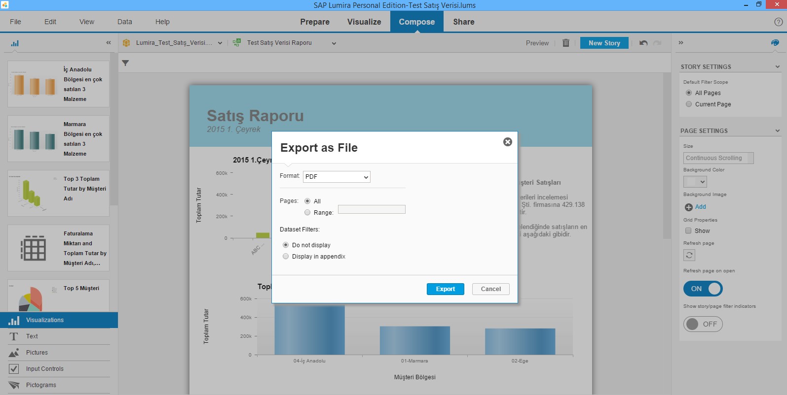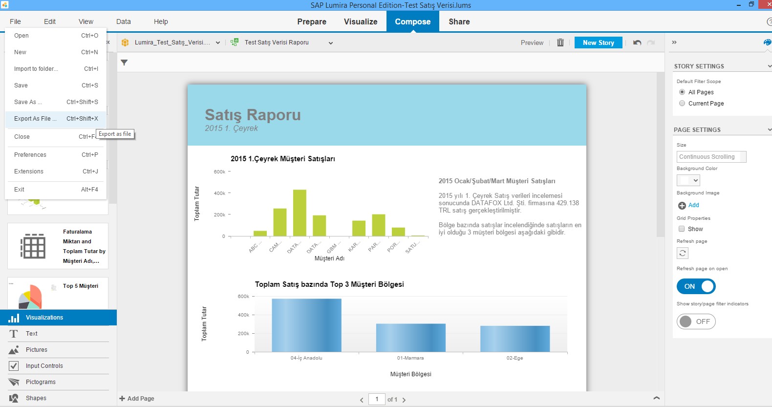 Raporunuzun tamamladığını düşündüğünüz noktada “Export As File” ile pdf formatında dışarıya alabilirsiniz.