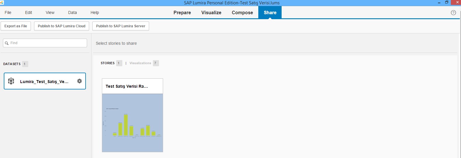 Share adımında ise de SAP Lumira Cloud veya SAP Lumira Server üzerinden raporunuzu paylaşabilirsiniz.