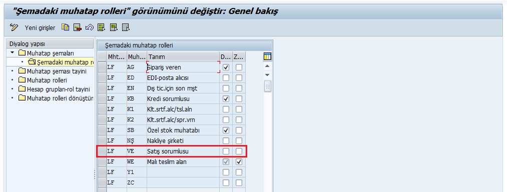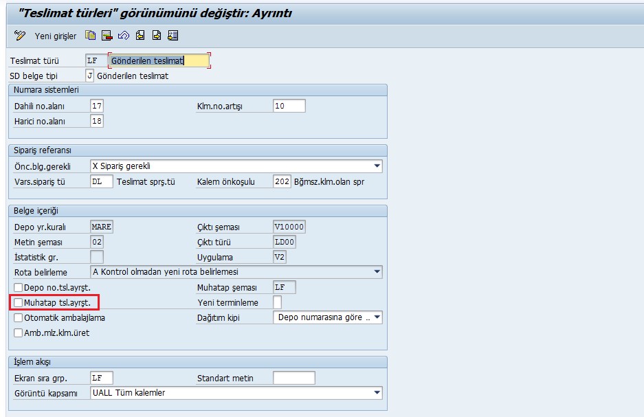 Burada dikkate edilmesi gereken husus muhatap ayrıştırması yapılmak istenen muhatap türünün aşağıdaki ekran görüntüsünde de göreceğiniz üzere teslimat muhatap şemasında da bulunması gerekmektedir.