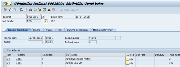 SD modülü teslimat süreçlerinde standart “0002 Gönderilen Teslimat” profili kullanılabilir.